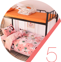 Dormitory bedding mainly involves three-piece sets, quilts, pillows and other products. The processed products are strict in material selection, meticulous workmanship, and novel patterns.